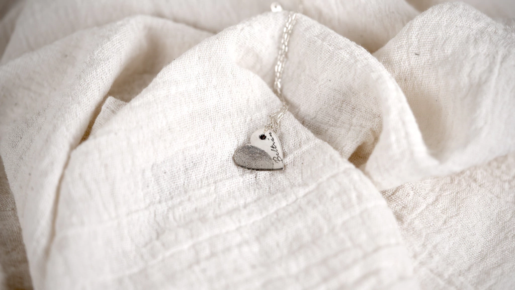 incluye una huella grabada y un nombre grabado + Cadena de plata de 45 cm de largo